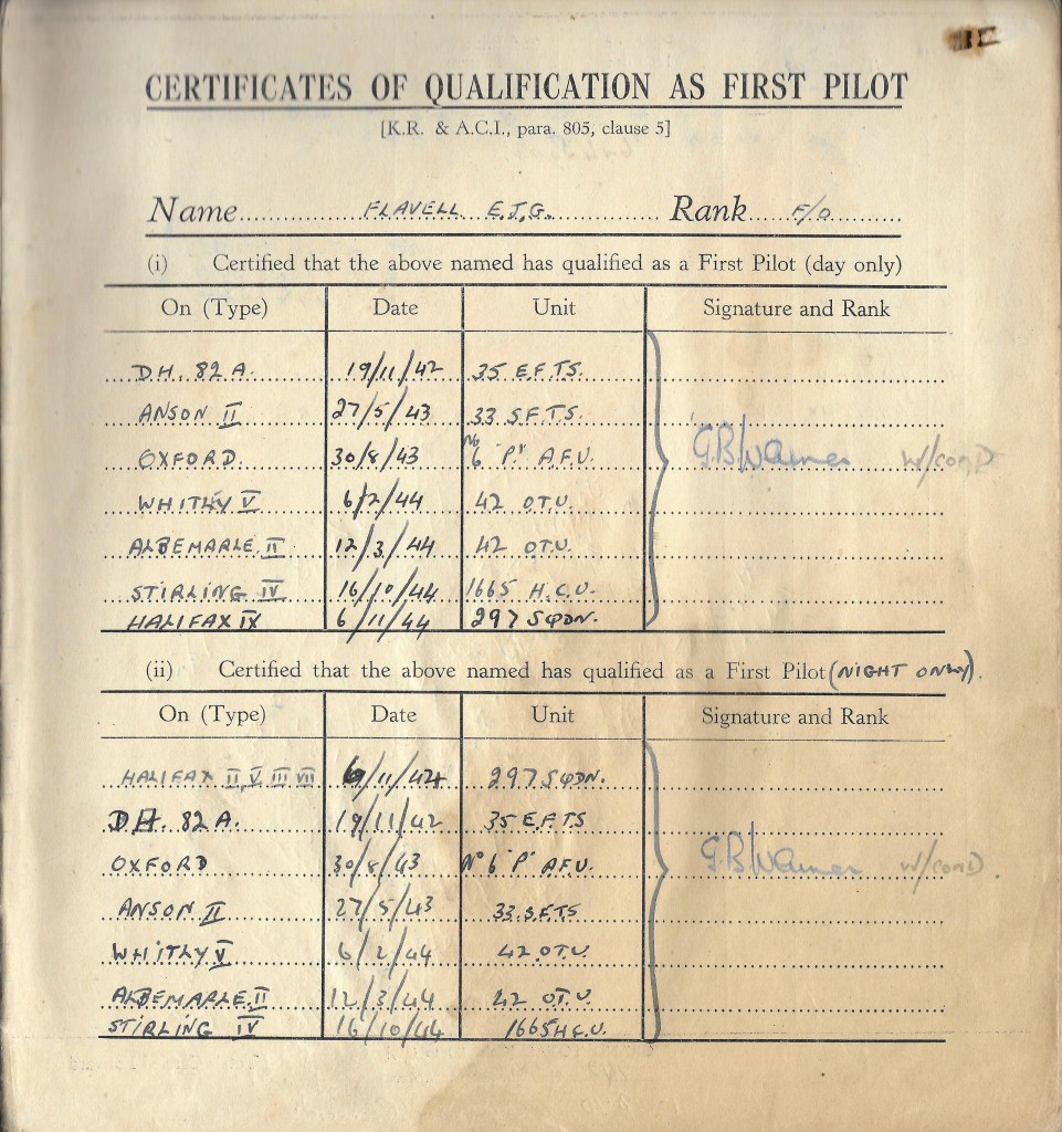 F/O E.J.G. (TED) FLAVELL RINGWAY AND 38 GROUP OPERATIONAL FLYING