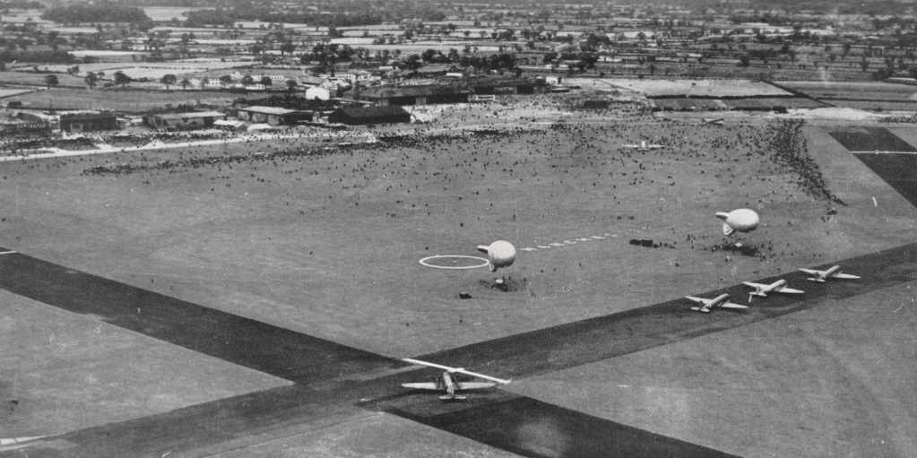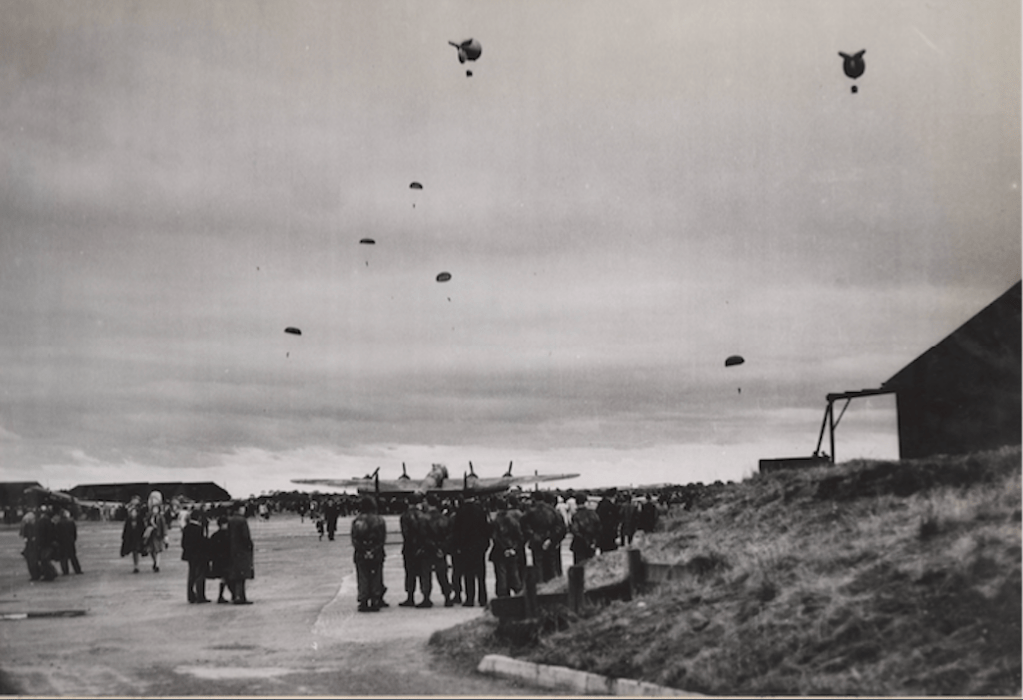 Airfield with sports field in foregroundRingway RAF Open Day 15 September 1945Demo descentsRingway Staff 12 October 1944